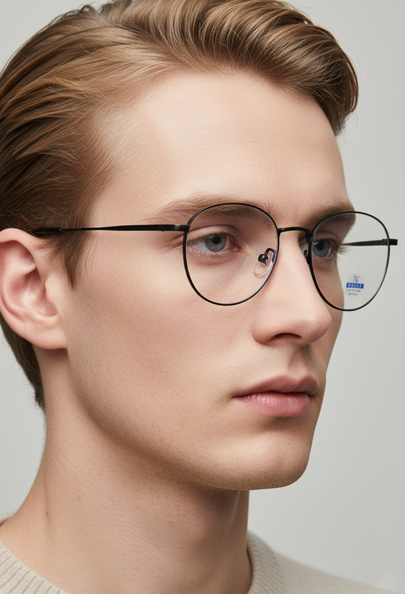 A smart choice for screen time. Featuring high-quality Blue Light Blocking lenses to protect your eyes during long hours of work or study. The frame is crafted from Titanium, offering superior strength and an incredible, feather-light feel. The classic round silhouette is versatile and professional. Prescription ready.