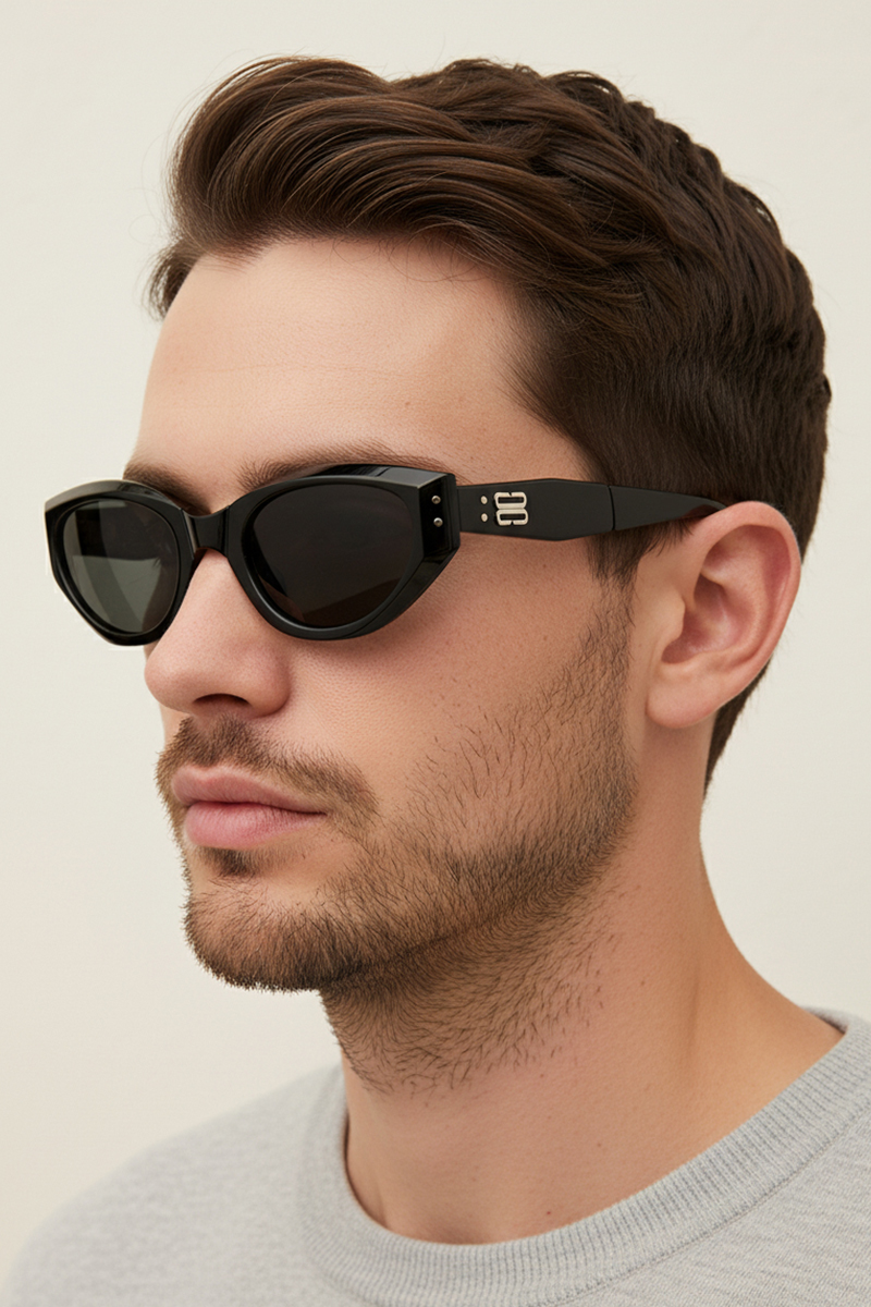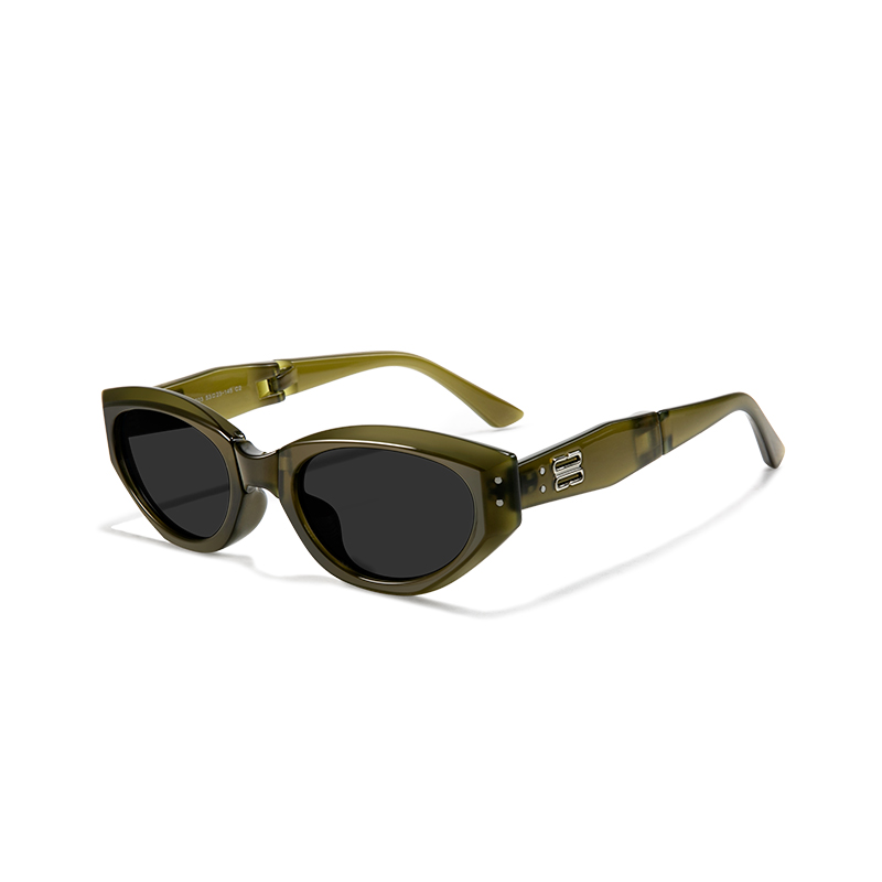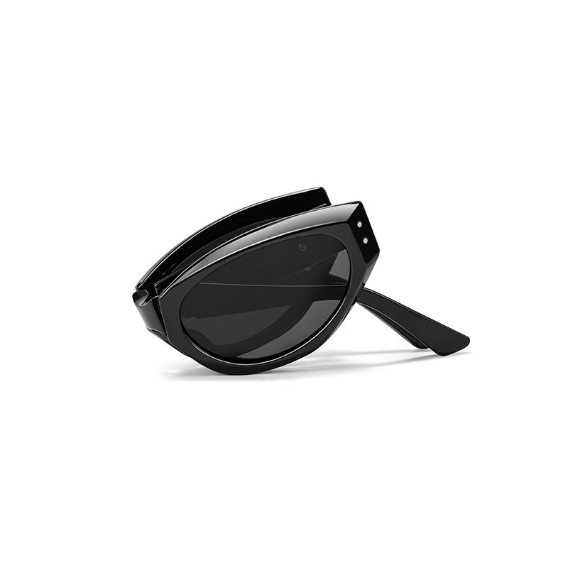 Make a bold statement with these slim, edgy Cat-Eye shades. The chunky frame and unique metal logo on the temple create a strong fashion-forward look. They feature a foldable design for ultra-convenient storage. Available in classic Black and trendy Translucent Green. Essential UV400 protection.