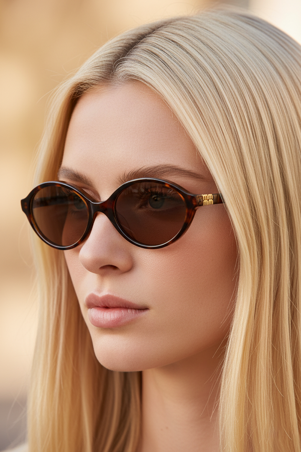 Make a bold retro statement with these narrow oval sunglasses. The sleek, slim frame shape is inspired by vintage glamour, offering an instantly chic and distinctive look. The rich tortoiseshell pattern in warm brown and black adds depth and sophistication. Finished with a striking gold-tone logo accent on the temple, these shades have an elevated designer feel. The brown-tinted lenses provide reliable UV400 protection. Lightweight and comfortable, they are the perfect accessory for fashion-forward individuals.