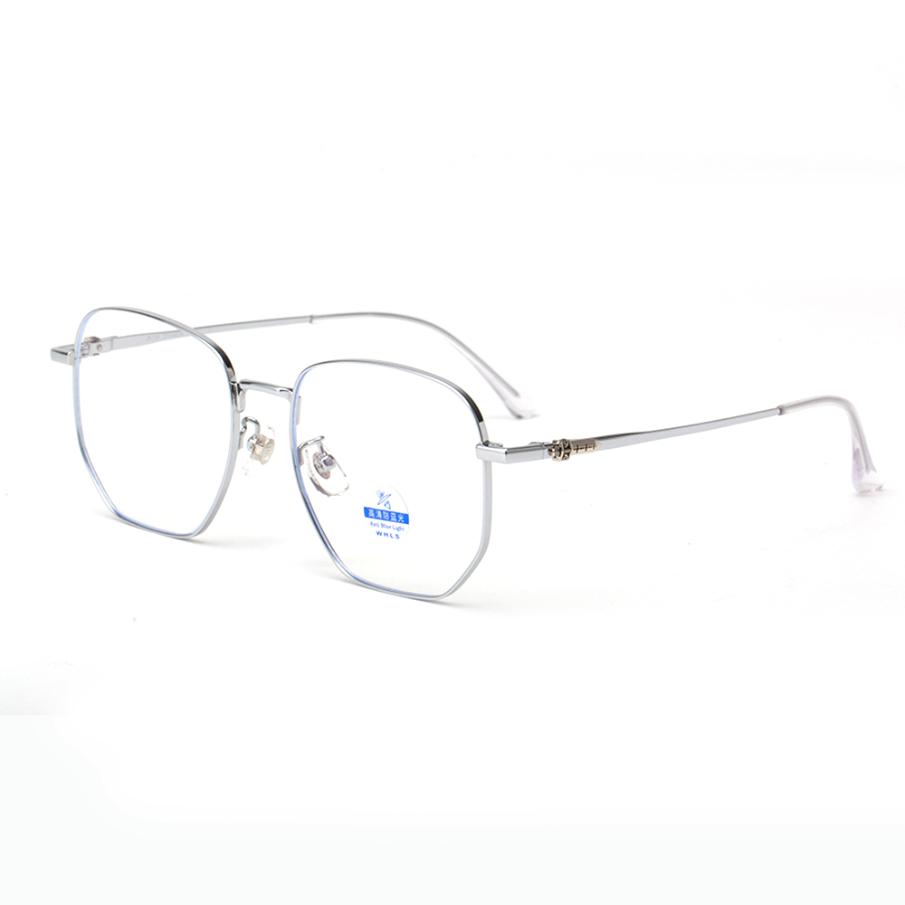Add a sophisticated touch to your look with these sleek silver eyeglasses. The frames feature a unique, geometric shape that blends modern and minimalist design, perfect for making a stylish statement. Crafted from a lightweight Titanium , these glasses are comfortable for all-day wear. The design is versatile enough for both professional and casual settings. The clear lenses are ready for your custom prescription, making them a great choice for both style and function.