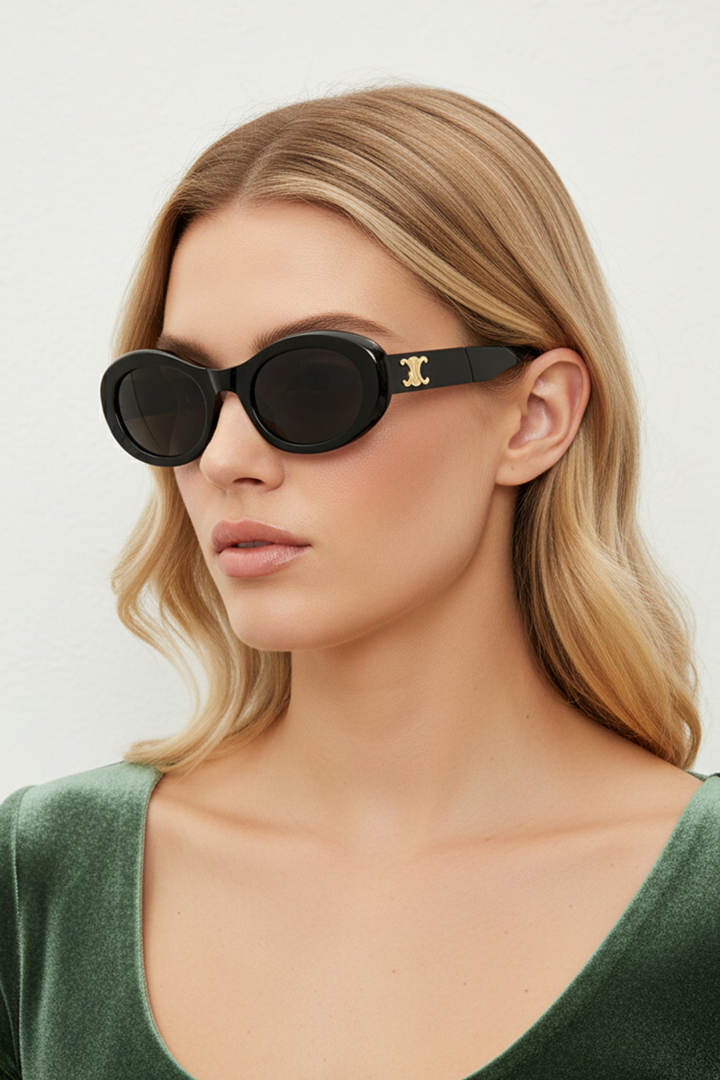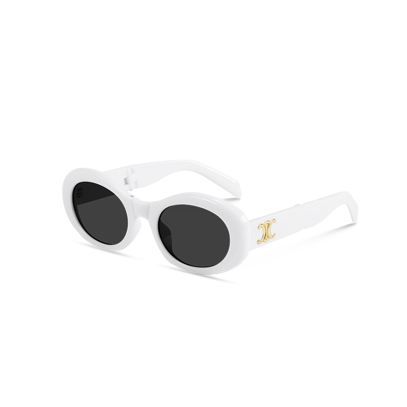 Step out in iconic 90s style! These bold, chunky oval frames feature a dazzling gold logo detail on the temple and offer the ultimate in convenience—they fold down small for easy carrying. Available in glossy Black and striking White. Enjoy full UV400 protection with a unique, high-fashion statement.